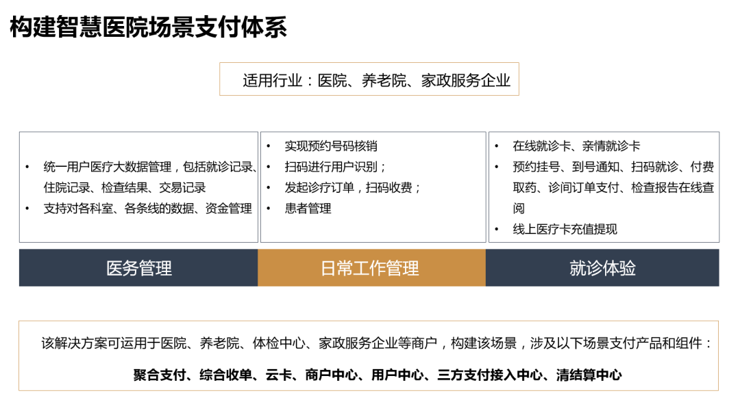 BB贝博艾弗森官网场景支付助银行践行“惠民利企”的初心与使命。例如,工商银行电子钱包建设案例,将金融支付服务融合到诸多大型企业如茅台集团的供应链环节中,实现场景支付,解决供应链上下游中小企业支付更便利的问题。齐鲁银行通过物业管理公司将银行金融服务与社区居民多样化的支付场景相融合,助力物业管理公司引入商城、生活缴费、物管服务、教育等场景,满足社区的云缴费、在线商城、收单管理等聚合支付需求,构建社区场景支付小生态,给居民生活带去更多便利。最新中标的宁波鄞州银行,作为全国首家农村合作银行,BB贝博艾弗森官网针对其大量B端各类型企业面临的多样化收单场景,以APP、小程序、PC网页等形式,根据B端企业规模、需求及运营能力,提供定制化的收单场景服务,满足如:医院、学校、餐饮等行业特殊收单场景需求。