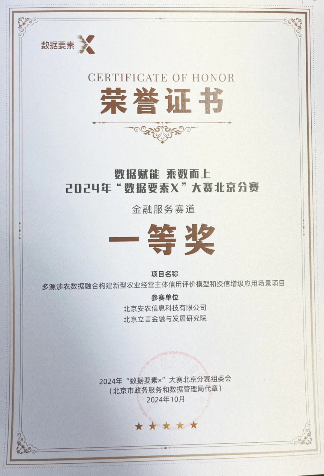 安农信科团队此前在“数据要素×”北京分赛区获金融服务赛道一等奖